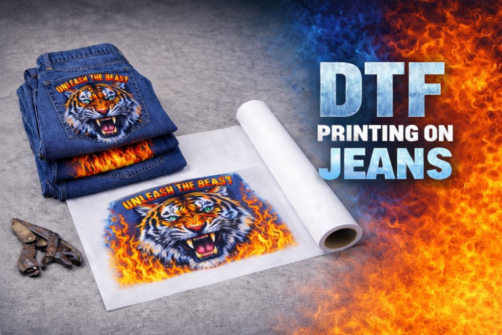 DTF stands for Direct To Film. This technique involves printing your design directly onto a film and then transferring it to a T-shirt made of cotton, polyester, or their blends, regardless of their color, as it can work with white ink.This printing method is durable and the designs come out very detailed and vibrant Transfers can be applied to all types of garments. You can transfer the film by using the iron on t-shirts, polo shirts, hoodies, hi-viz, sportswear, bags, caps and more.